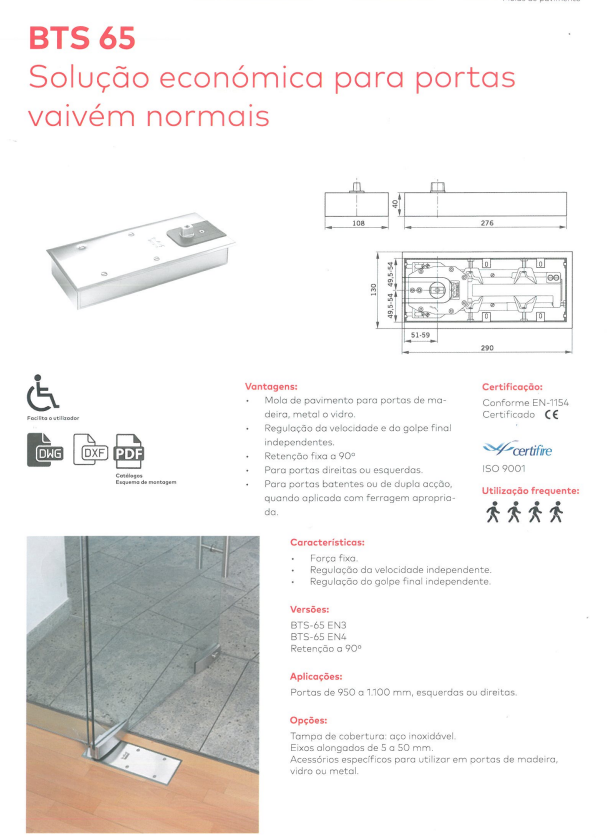 - Mola de pavimento para portas de madeira, metal ou vidro.